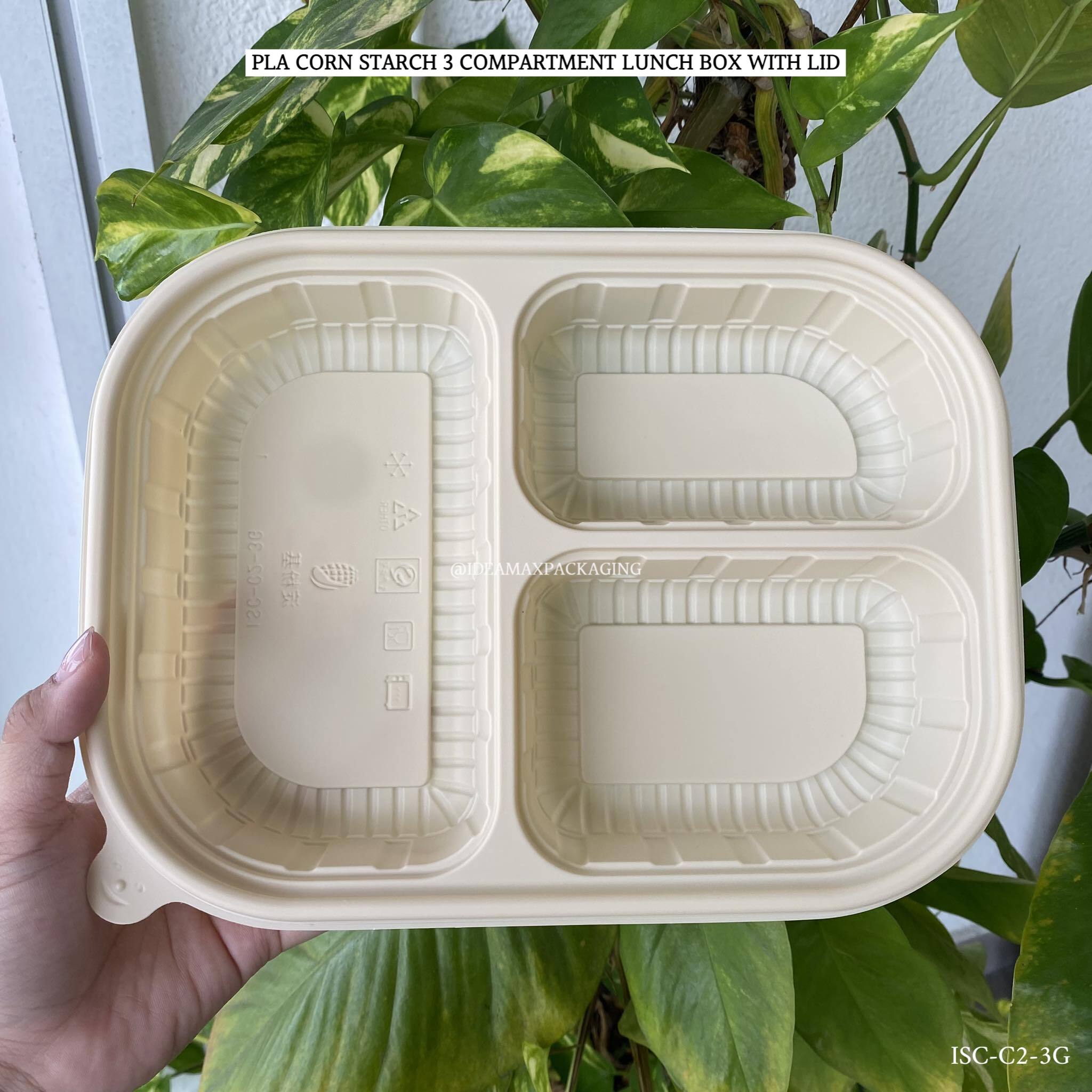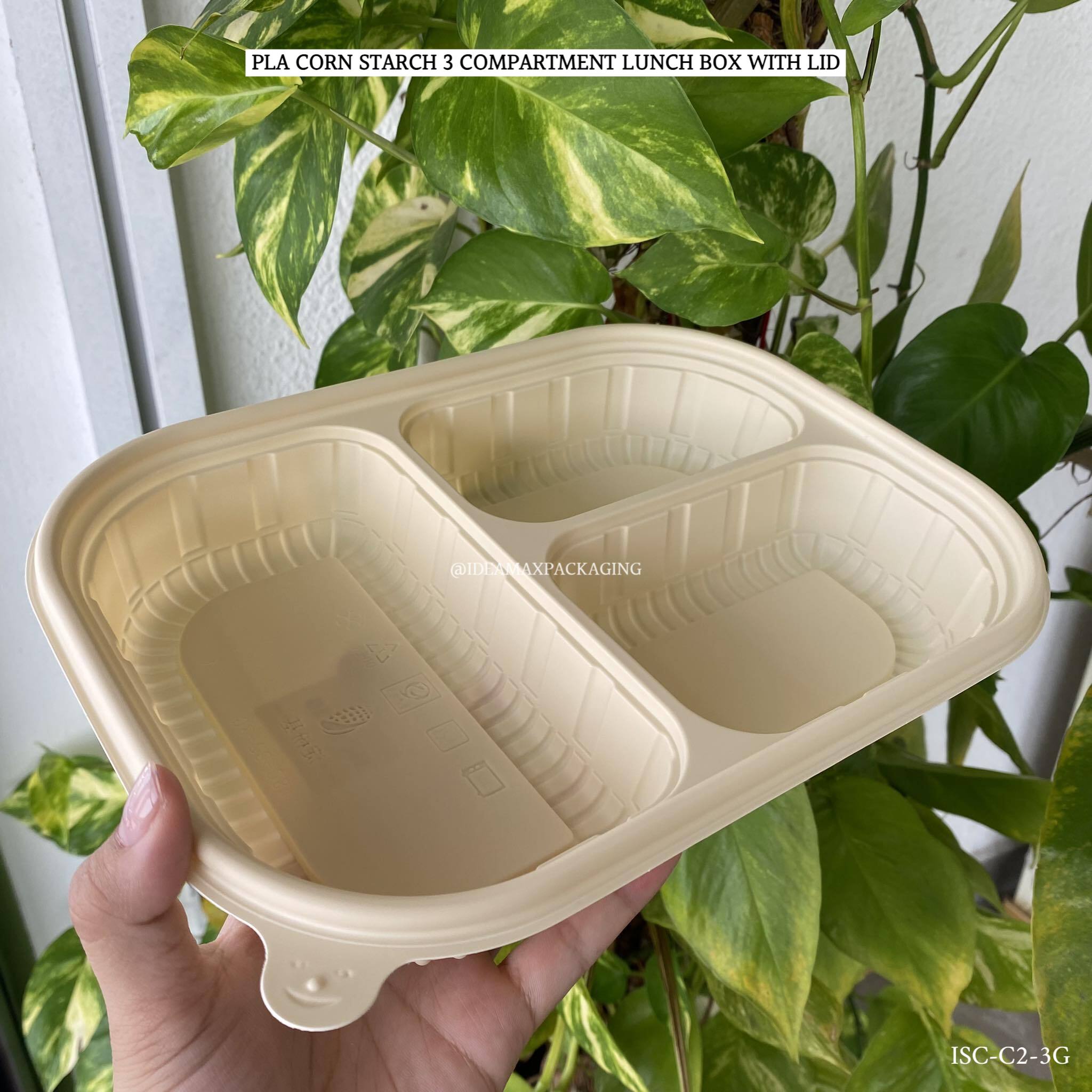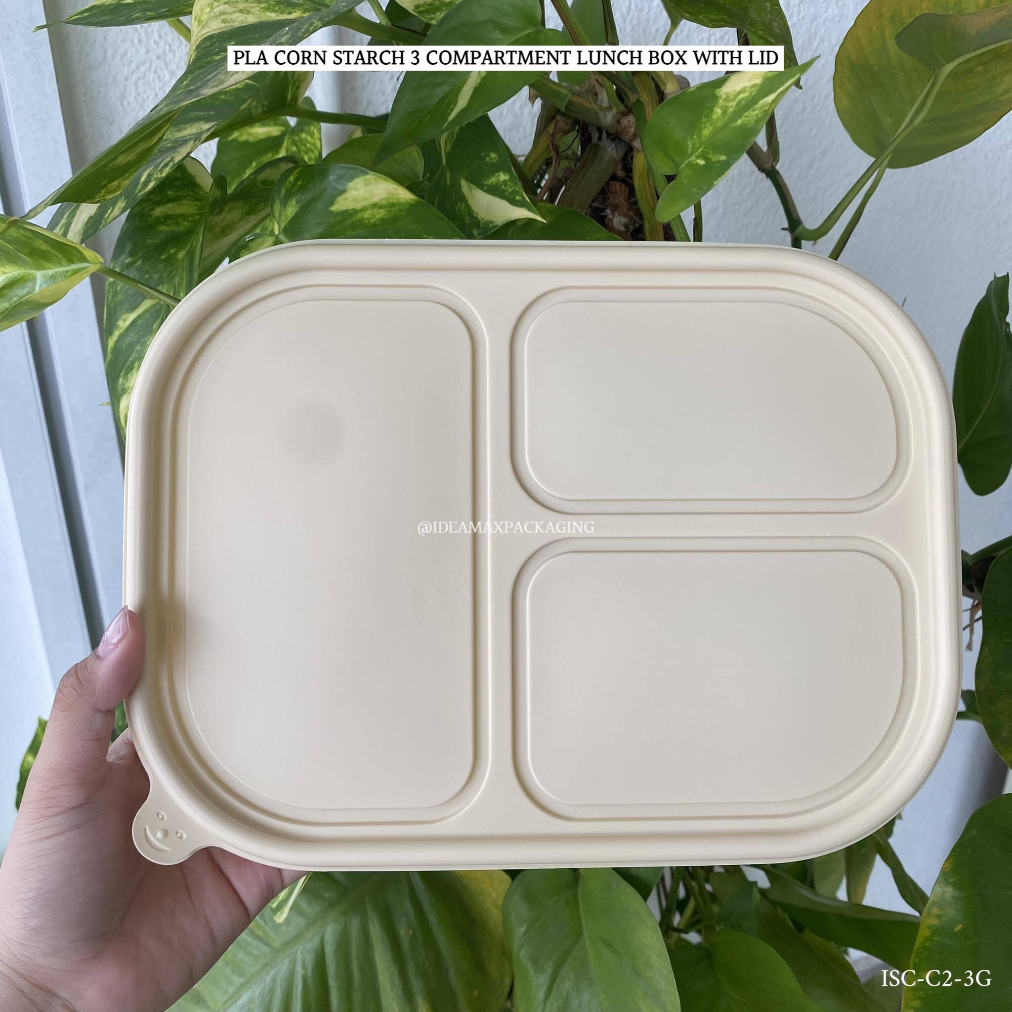 Products Name: 3 COMPARTMENT PLA CORN STARCH LUNCH BOX WITH LID